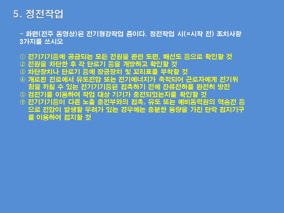 5. 정전작업시 : 산업안전보건기준에 관한 규칙