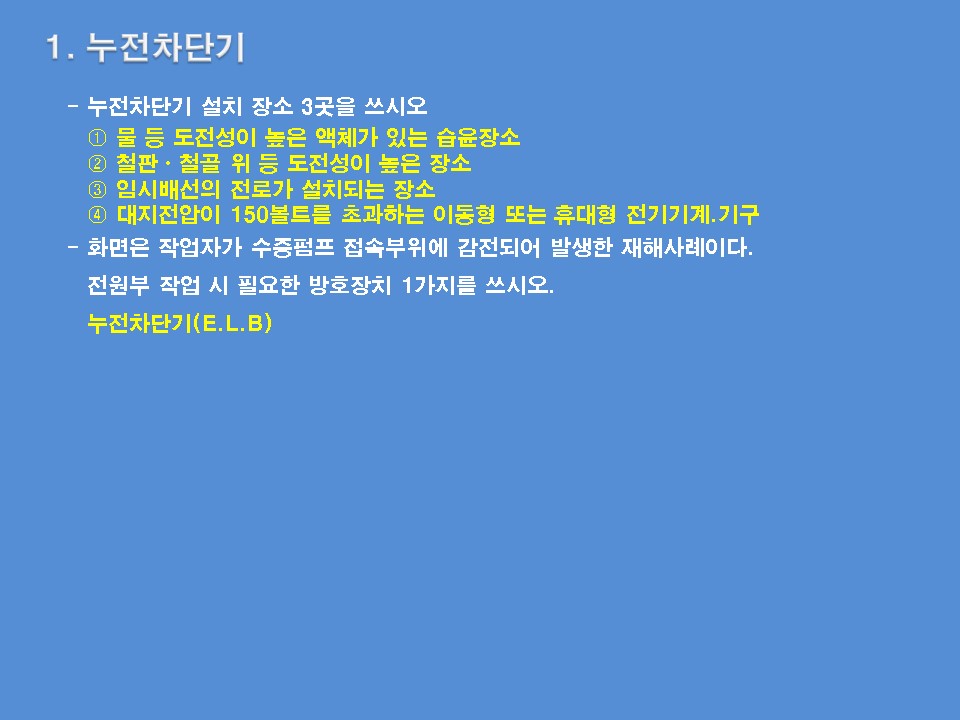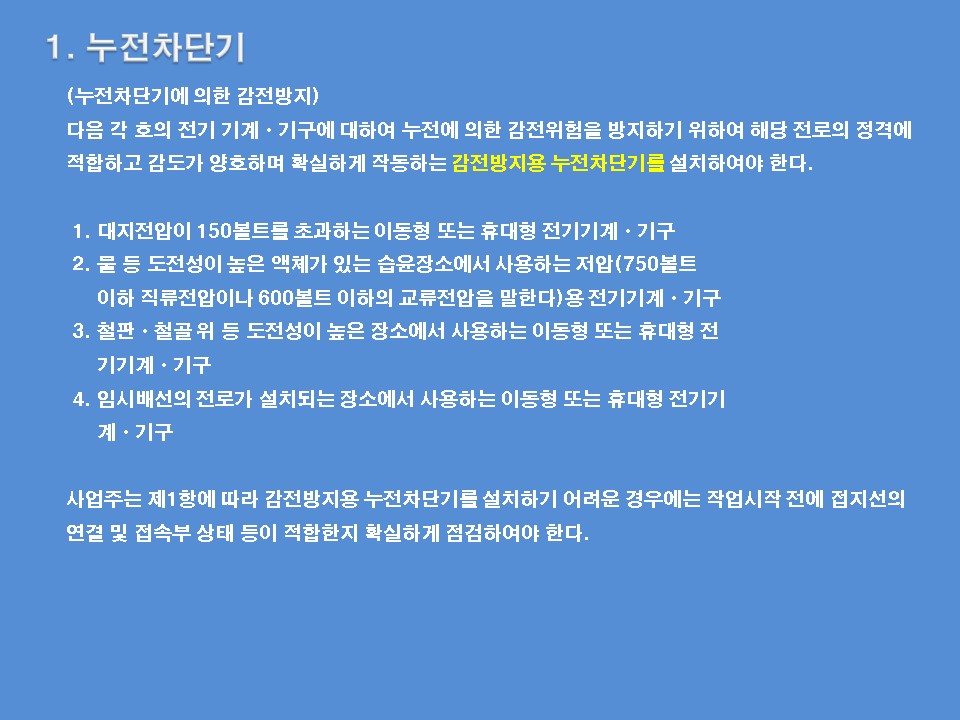 1. 누전차단기 : 누전 차단기에 의한 감전방지